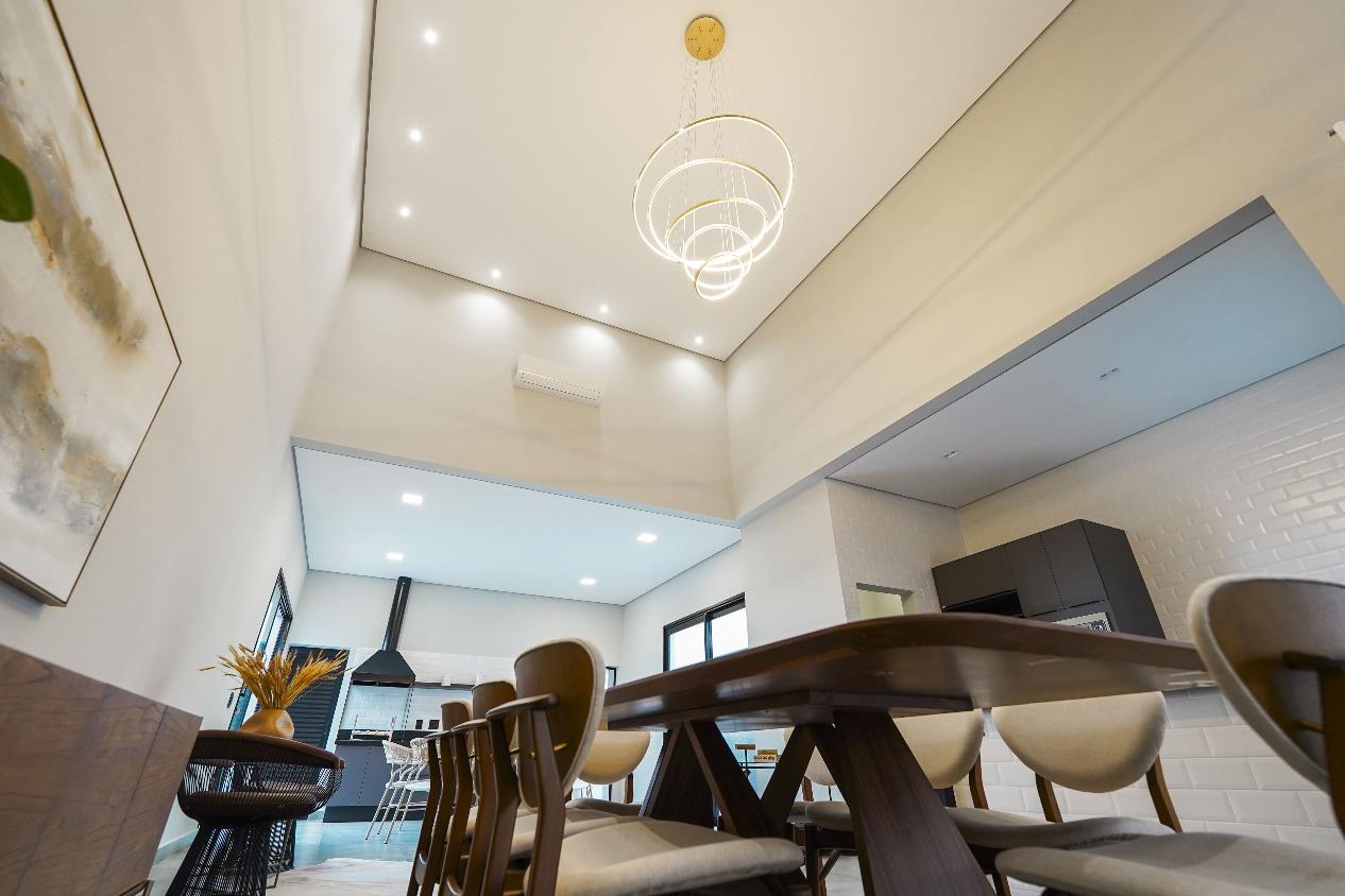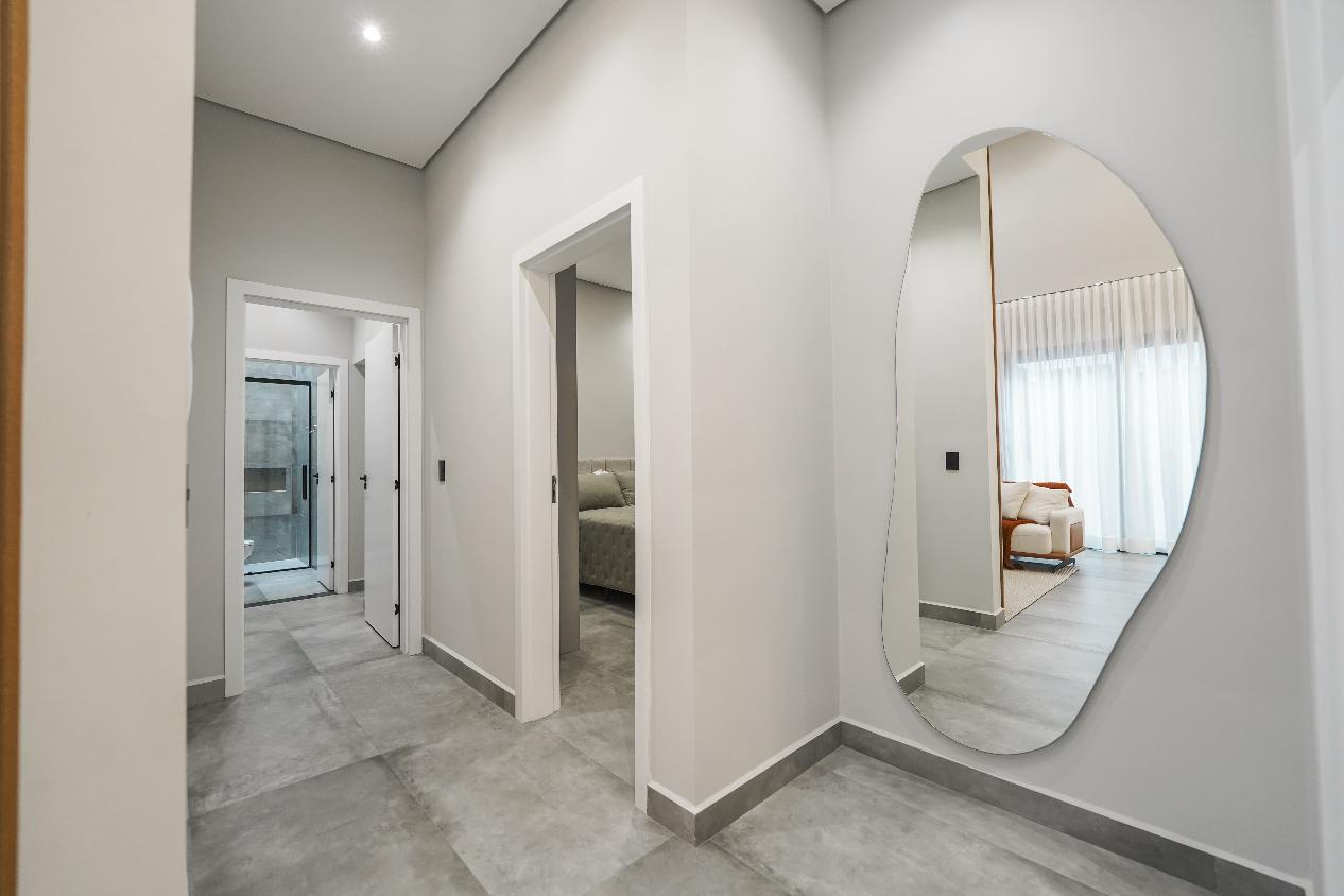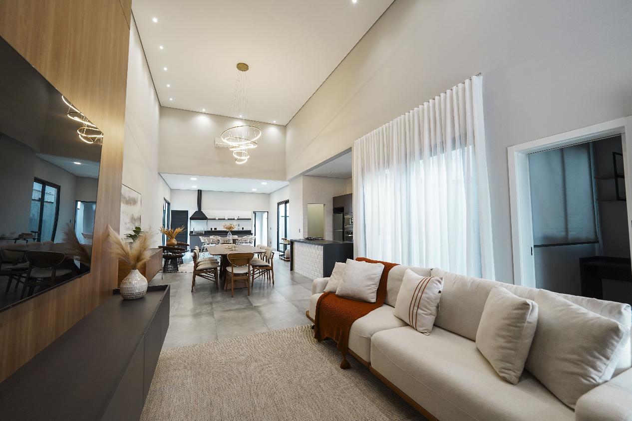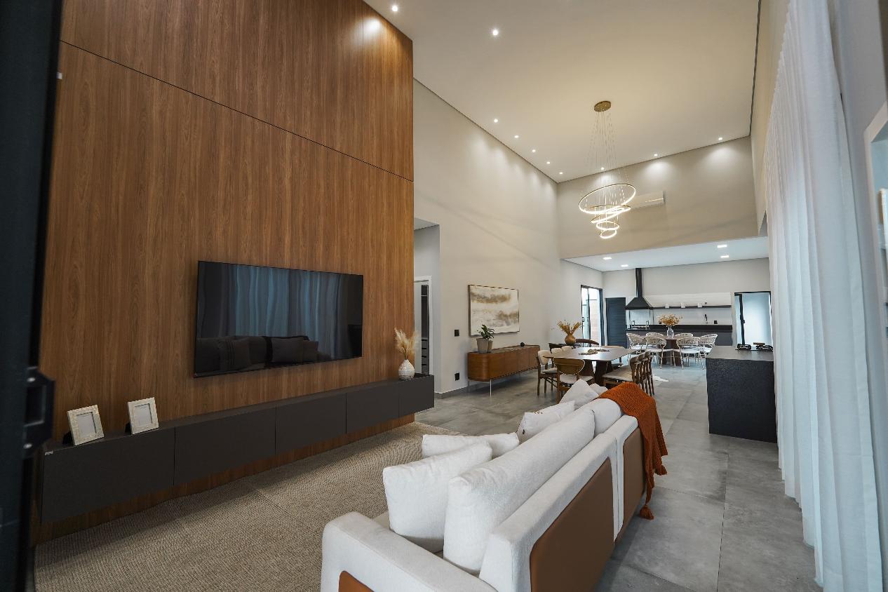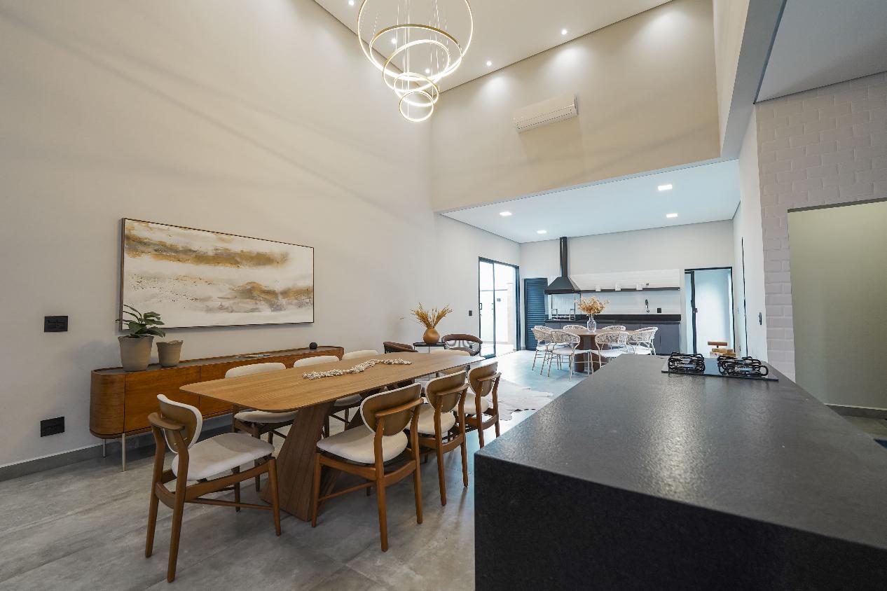 Projeto sofisticado com ambientes amplos, integrados e acabamento de alto padrão. Esta residência térrea conta com 3 suítes, sendo a master com closet planejado, além de living com pé-direito duplo que valoriza iluminação e ventilação natural.