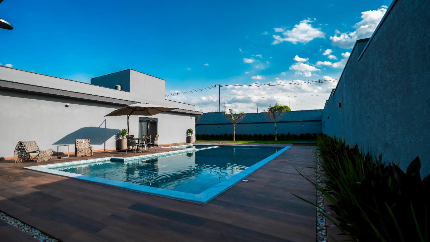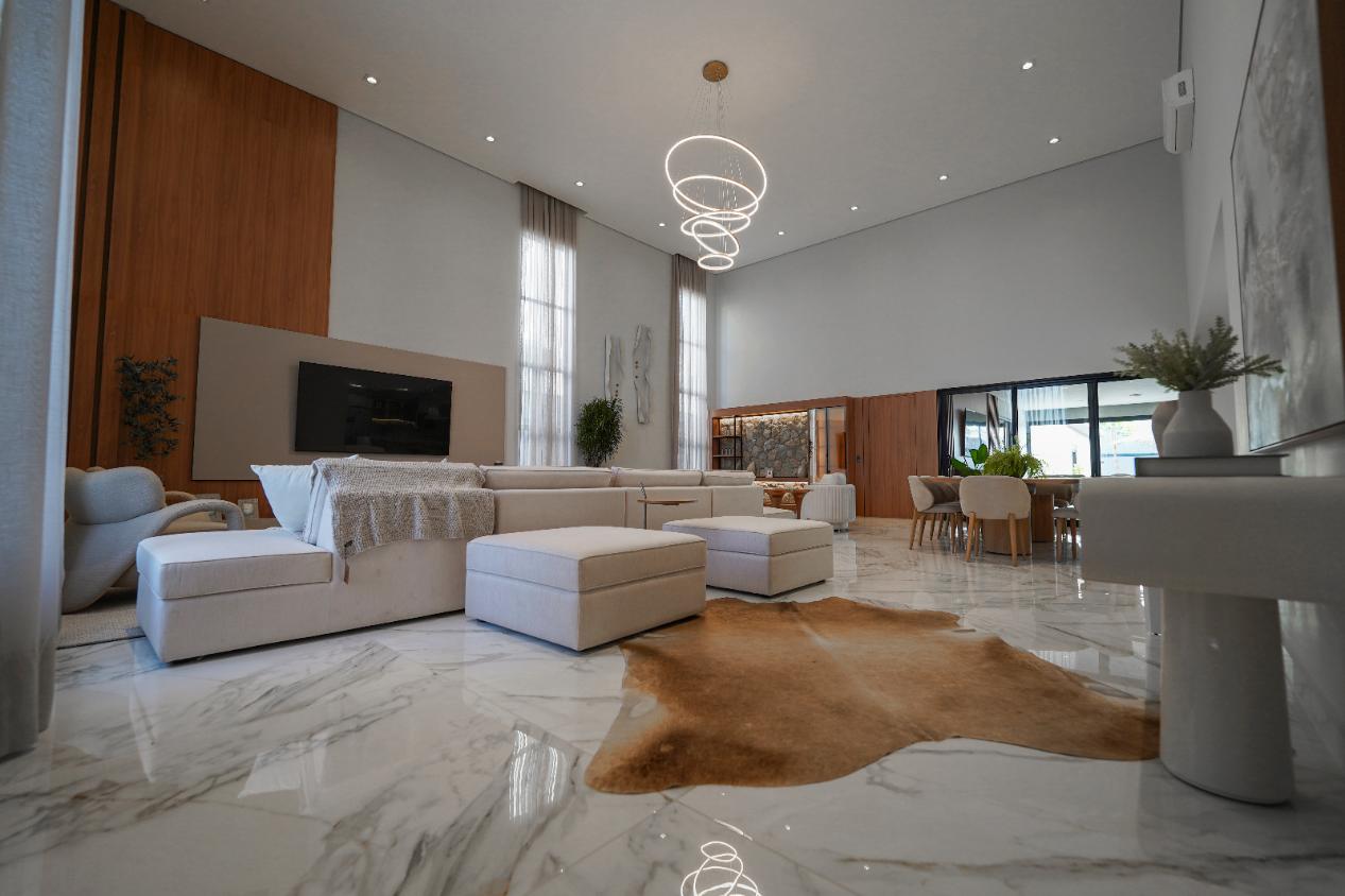 Linda Casa Térrea com uma belíssima fachada, com localização privilegiada, em um condomínio completo de alto padrão com lazer e segurança! Conta com 4 suítes com closet sendo 1 master com closet, em piso de madeira maciça. Ampla sala de estar e jantar com pé direito duplo com piso porcelanato polido calacata exceto área gourmet. Conta com lavabo, cozinha toda equipada, despensa, área de serviço, despejo, banheiro externo, com uma bela piscina com prainha e spa e garagem para 6 carros sendo 3 cobertos.