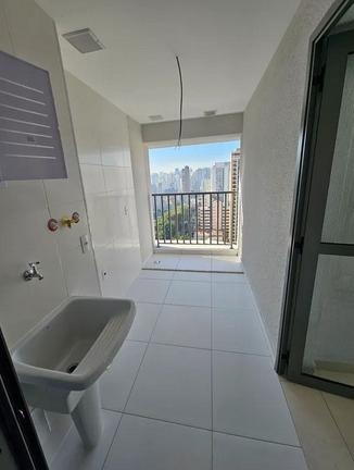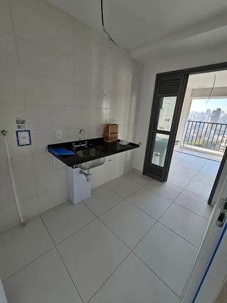 A cozinha, em conceito tradicional porém conectada à área social pela proximidade, oferece ótima ergonomia e ventilação. A área de serviço fica em posição discreta, mantendo a organização do dia a dia.