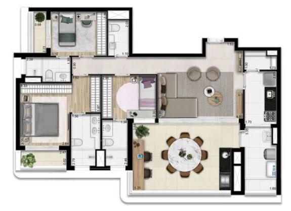 Este apartamento oferece um layout moderno, extremamente funcional e pensado para proporcionar conforto em cada detalhe. A planta integra com harmonia os ambientes sociais, valorizando a luminosidade natural e a fluidez entre sala de estar, jantar e cozinha.