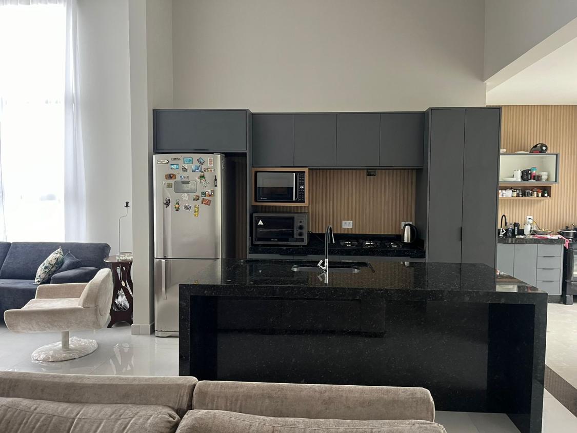 A cozinha conecta-se à área gourmet, que se integra à piscina, criando o cenário ideal para receber.