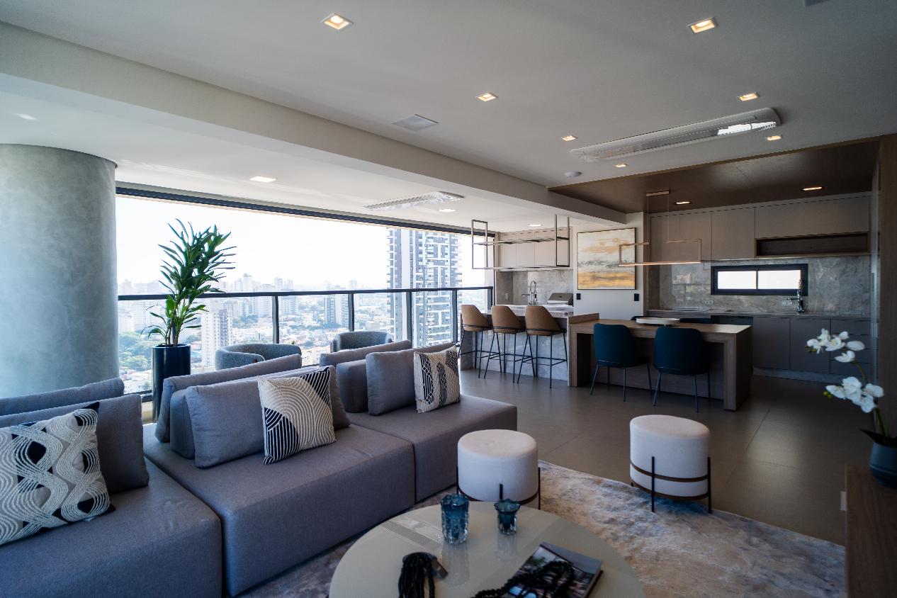 Apartamento novo, todo mobiliado e decorado. Armários planejados todeschini em todos os ambientes. Automação foneplan. Forro lã de rocha acústico. Ar condicionado LG em todos os ambientes sendo na sala e gourmet K7 1 via. Todo em piso porcelanato exceto dormitórios em piso vinílico. Cozinha com forro de madeira Todeschini e pia em marmore branco Paraná. Nichos nos banheiros em marmore branco parana. Bancada lavanderia marmore café escovado. Espaço churrasqueira máxima grill (gás e elétrica)  Acessórios do Imóvel: Aquecedor de água a gás komeco Prime, lave e seca LG 11Kg, geladeira Philco 486L de 2 portas com agua, Cooktop brastemp indução 4 bocas, coifa, forno e microondas brastemp 2 em 1, TV LG 75 polegadas 4k e sistema de Som Savant no teto mais subwoofer yamaha.